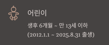 - 대상: 생후 6개월부터 만 13세 이하 어린이 (2012년 1월 1일 ~ 2025년 8월 31일 출생아)