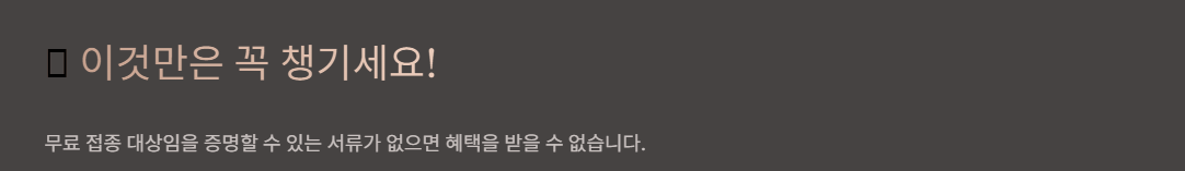 무료 접종 대상임을 증명하지 못하면 접종이 불가능하거나 유료로 전환될 수 있습니다.