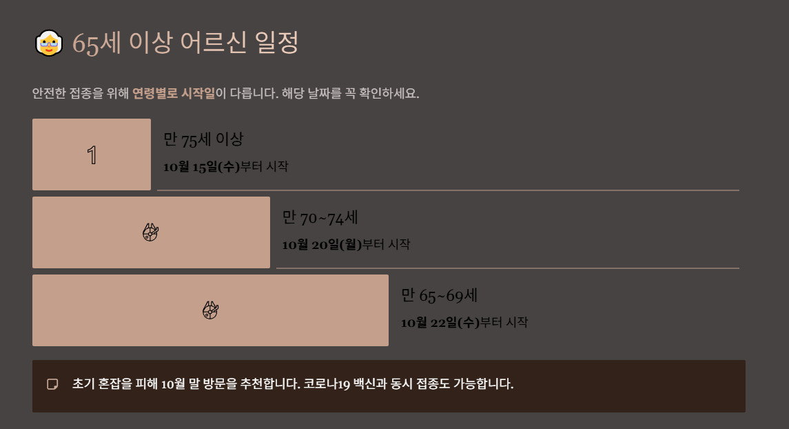 - 접종 시기: 연령별 순차 접종으로, 혼잡을 줄이고 안전한 접종을 유도합니다.