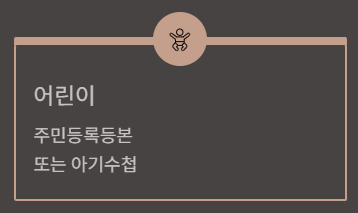- 어린이: 보호자 동반 및 아기수첩 또는 주민등록등본