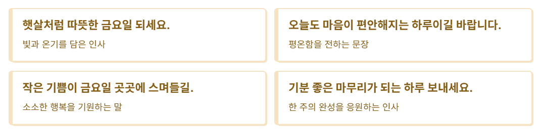 😊 3. 친구·가족에게 보내는 따뜻한 금요일 인사