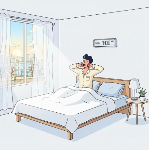 알람 소리에 눈은 떴는데, 마음은 아직 주말 이불 속입니다.