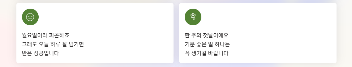 - 한 주의 첫날이에요. 기분 좋은 일 하나는 꼭 생기길 바랍니다.