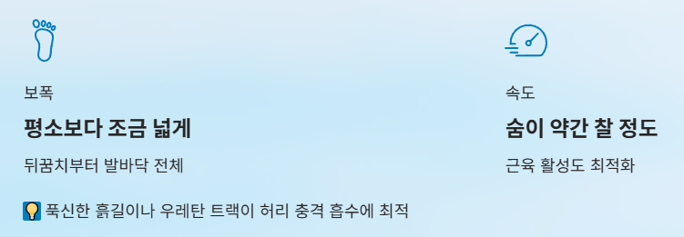 딱딱한 아스팔트보다는 푹신한 흙길이나 우레탄 트랙이 충격을 흡수해 허리에 부담을 덜어줍니다. 하루 30분만 꾸준히 걸어도 허리의 자생력은 놀랍게 좋아집니다.
