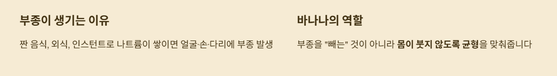 ✔ 부종 자체를 “빼준다”기보다