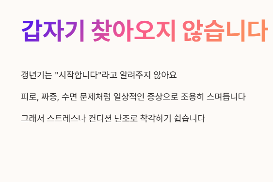 갱년기는 어느 날 갑자기 “시작합니다” 하고 알려주지 않습니다.
