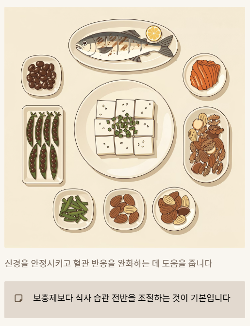 신경을 안정시키고 혈관 반응을 완화하는 데 도움을 줍니다.