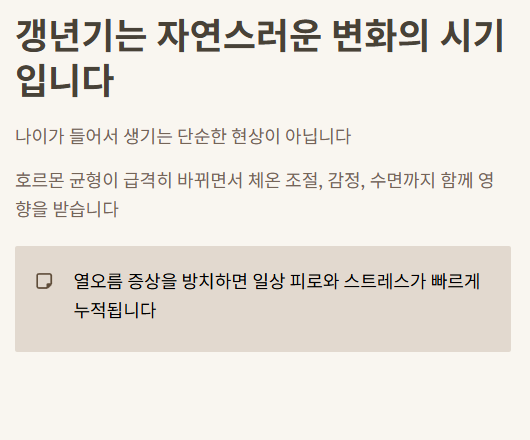 갱년기 열 오르는증상, 단순한 더위가 아니라 몸의 경고입니다