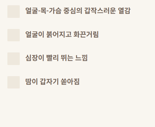- 하루 여러 차례 강한 열감 발생