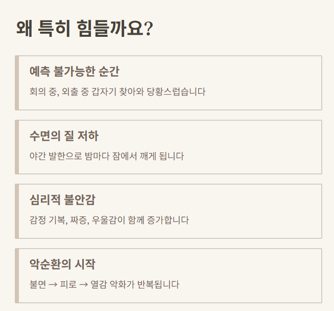 2. 열오르는 증상이 특히 힘든 이유