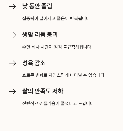 호르몬 변화로 자연스럽게 나타날 수 있습니다. - 삶의 만족도 저하