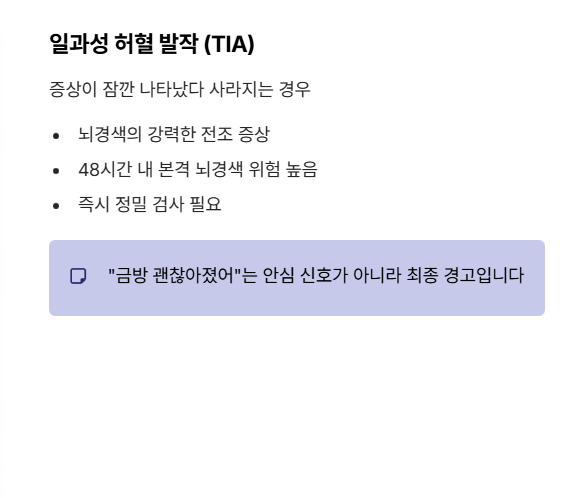 뇌경색 초기증상은 잠깐 나타났다 사라질 수 있지만, 결코 가벼운 신호가 아닙니다.
