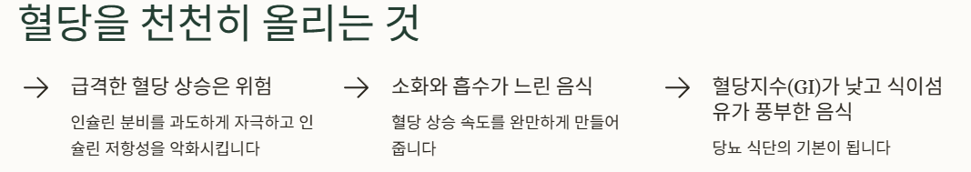 1. 당뇨 식단의 기본 원칙은 혈당을 천천히 올리는 것