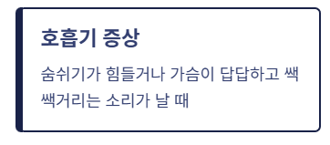 - 숨 쉬기 힘들거나 가슴이 답답함