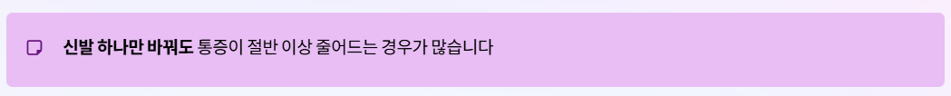 신발 하나만 바꿔도 통증이 절반 이상 줄어드는 경우가 많습니다.