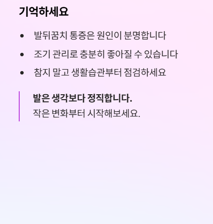 발뒤꿈치 통증은 단순 피로가 아니라 발 구조·근막·염증 문제에서 시작되는 경우가 대부분입니다.