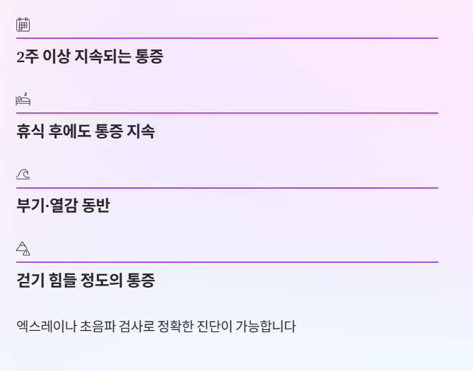- 휴식 후에도 통증이 줄지 않음