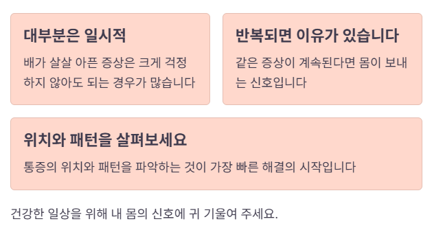 배가 살살 아픈 증상은 대부분 일시적이지만, 반복된다면 이유가 있습니다.