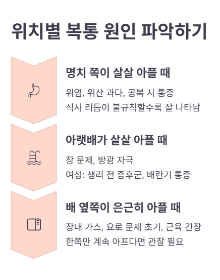 많은 분들이 이런 통증을 그냥 넘기지만, 살살 아픈 복통은 오히려 원인을 구분하기가 더 중요합니다.