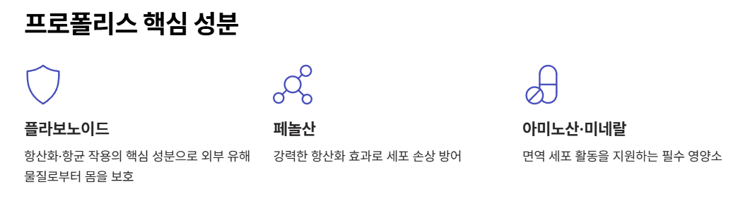 프로폴리스는 면역력 강화와 항균·항산화 작용에 도움을 주는 천연 성분입니다.