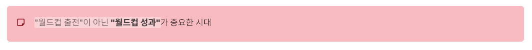 이제는 “월드컵에 나간다”는 사실만으로 높은 평가를 받기 어려운 시대입니다.