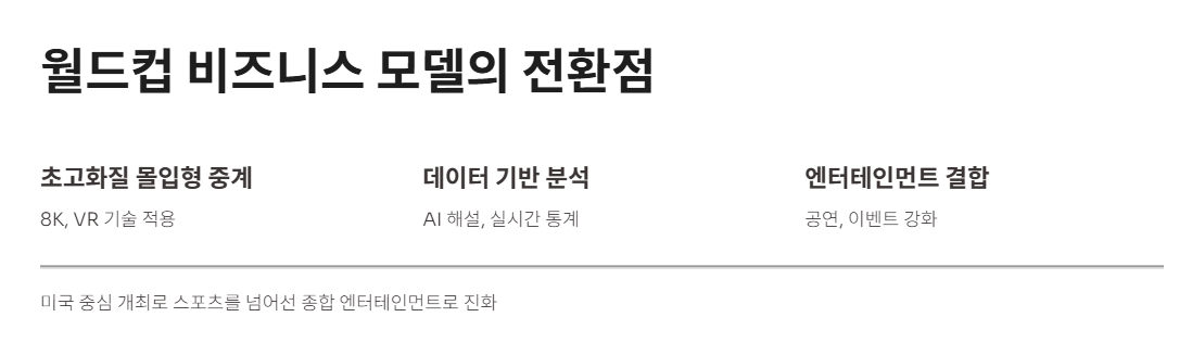 2026년 월드컵은 단순한 스포츠 이벤트를 넘어 월드컵 비즈니스 모델의 전환점이 될 가능성이 큽니다.
