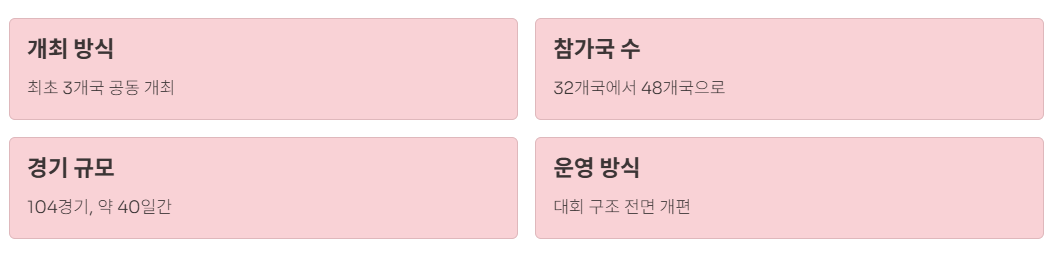 하지만 2026년 월드컵은 기존 월드컵과 비교 자체가 어려울 정도로 많은 변화를 예고하고 있습니다.